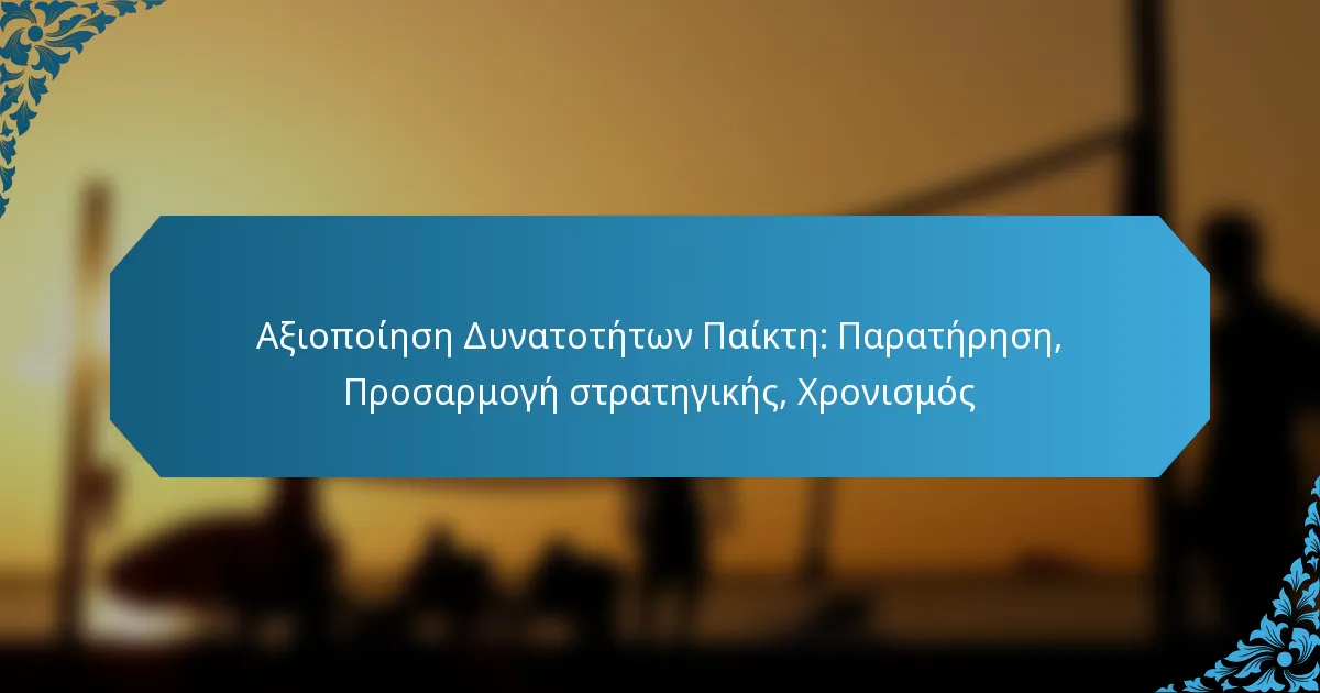 Αξιοποίηση Δυνατοτήτων Παίκτη: Παρατήρηση, Προσαρμογή στρατηγικής, Χρονισμός